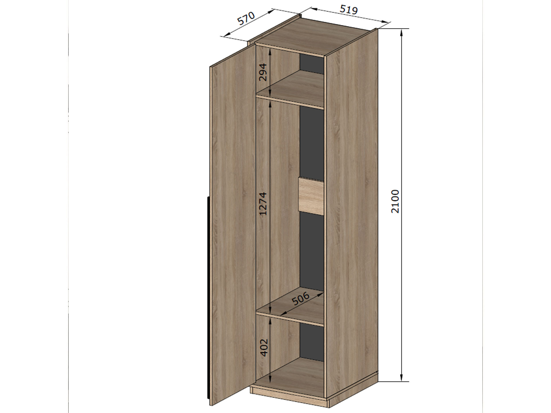 Розмір – ш.-518, в.-2500, г.-570 мм.