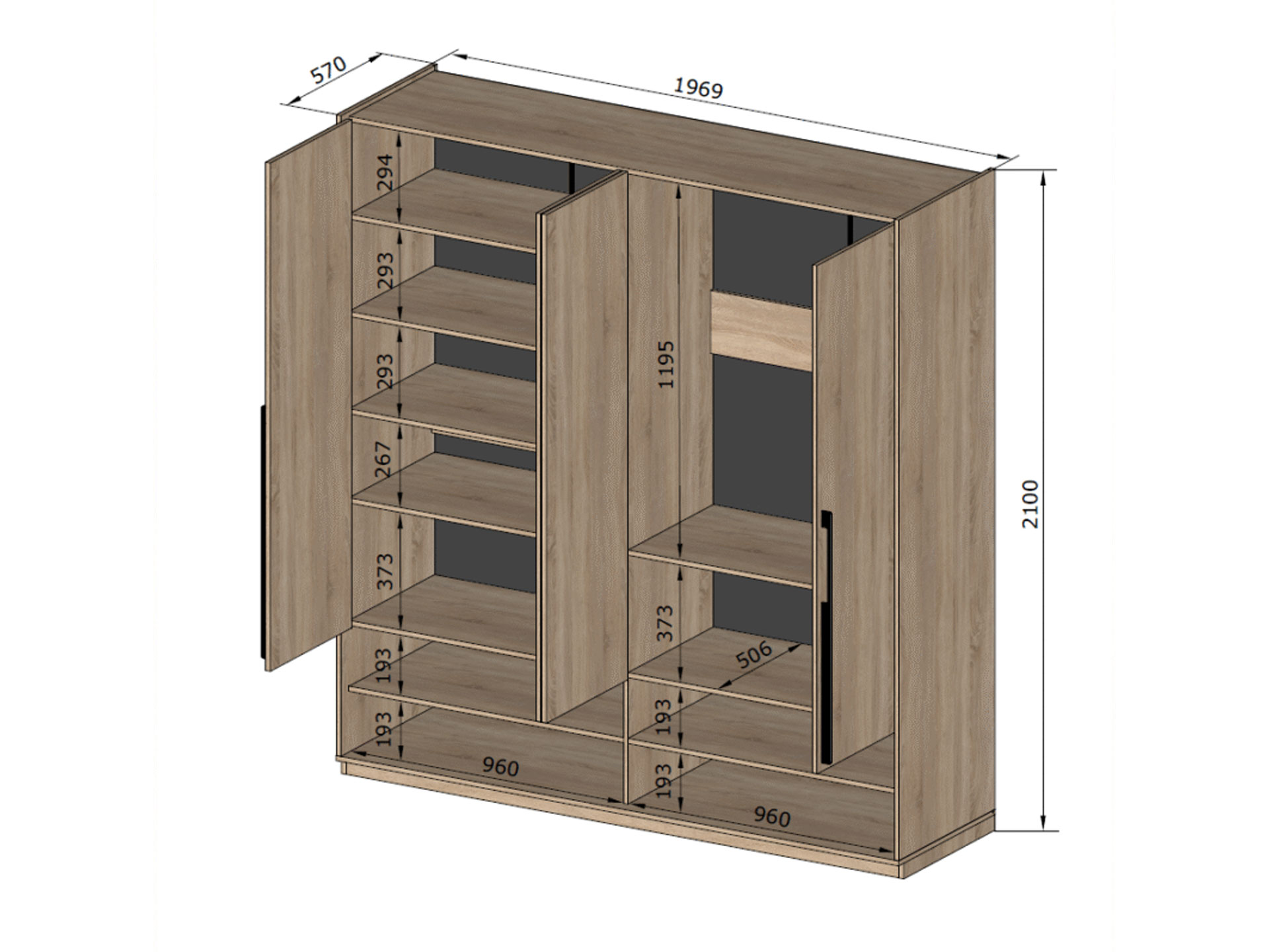 Розмір – ш.-1968, в.-2100, г.-570 мм.