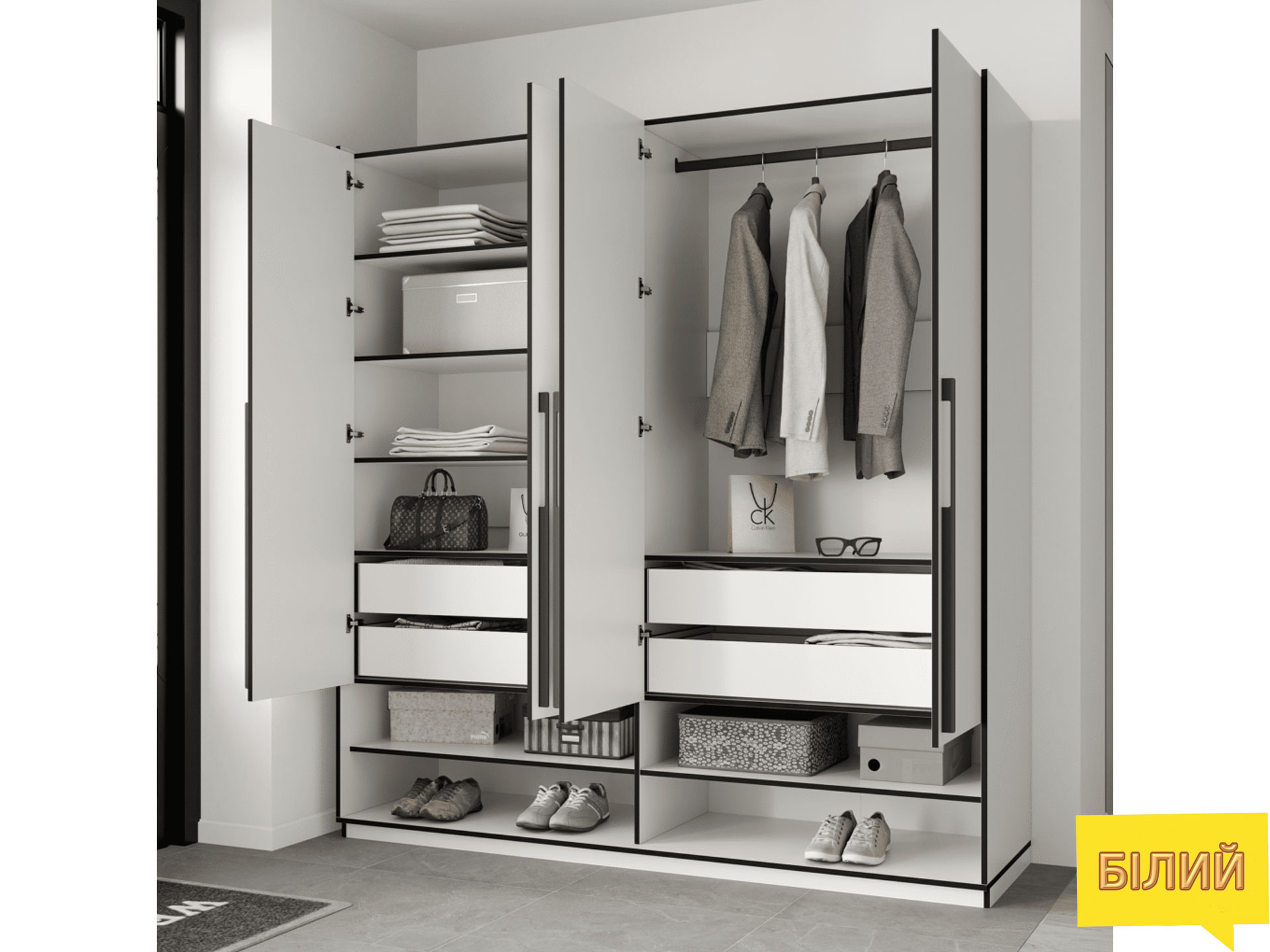 Шафа з штангою, полицями та шухлядами для одягу
