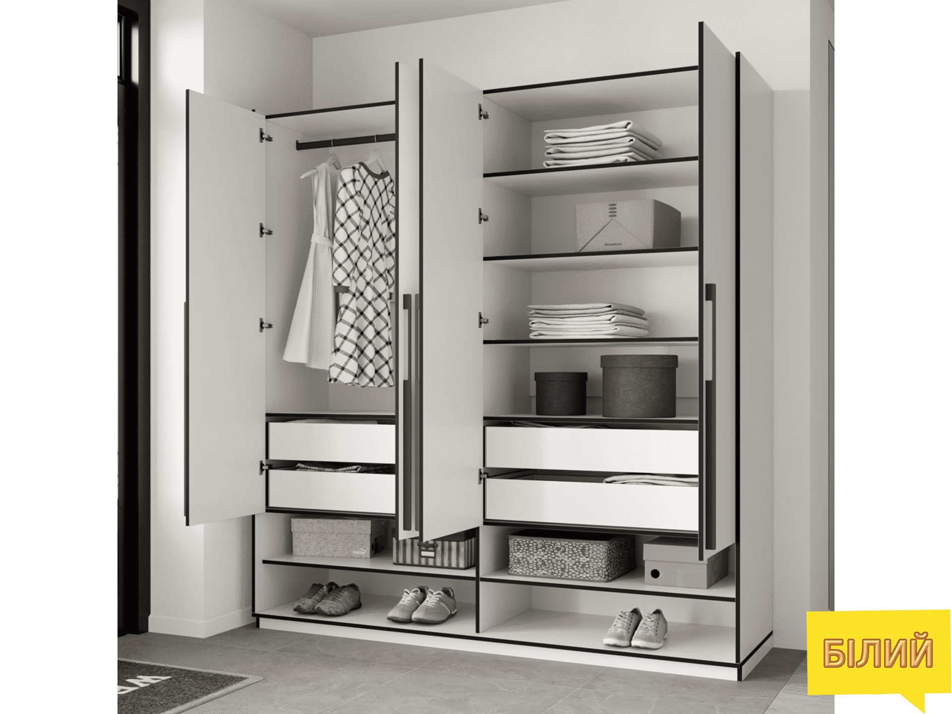 Шафа з штангою, полицями та шухлядами для одягу